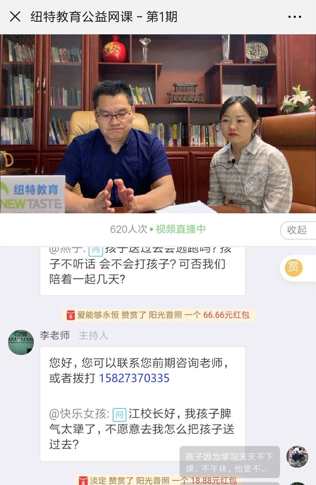 为摆脱时间、空间、地域的桎梏,更好的传播青少年心理与纽特家庭教育理念,机构不定期举办网络直播互动课程,更直接的帮助更多的家庭与青少年。